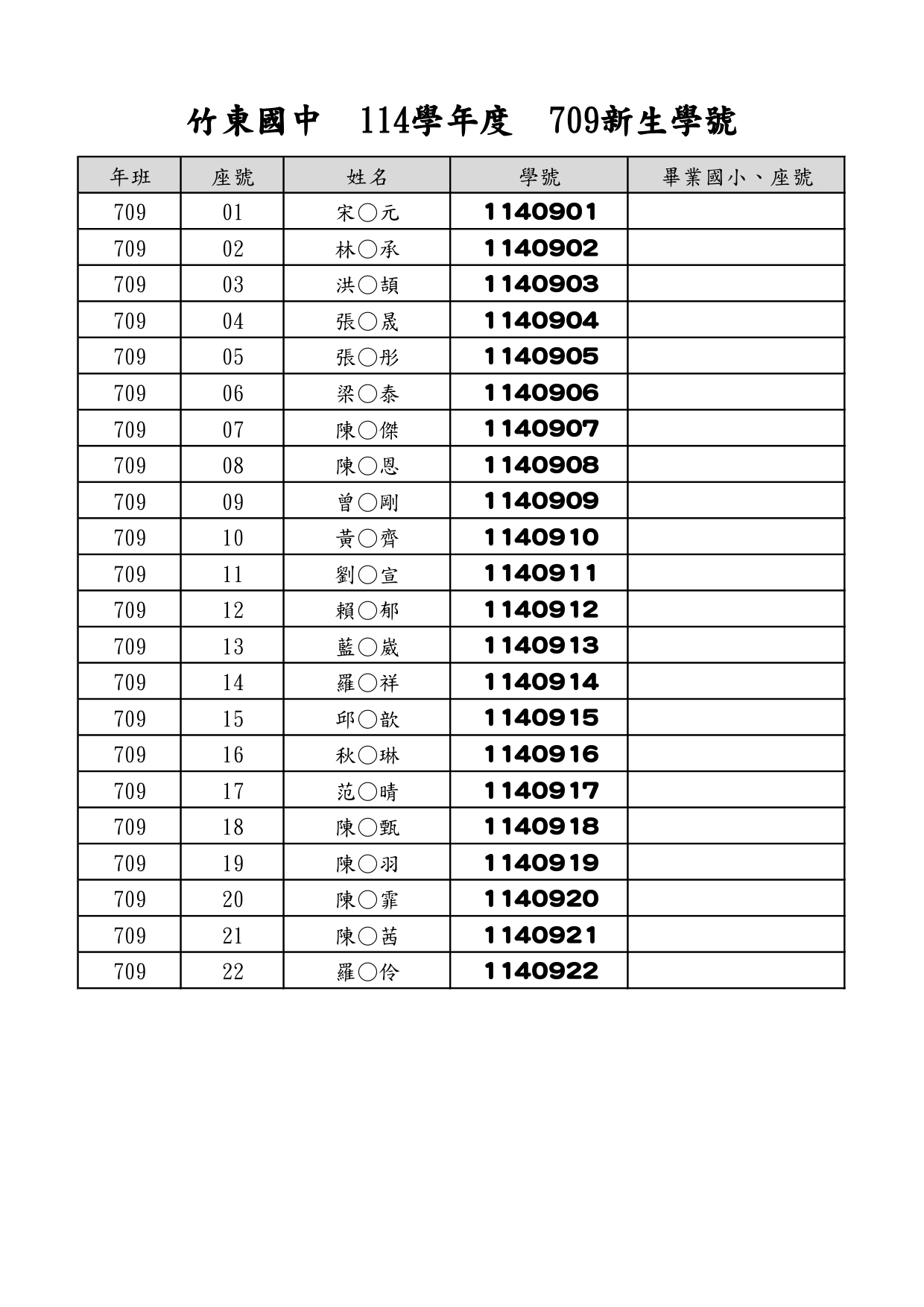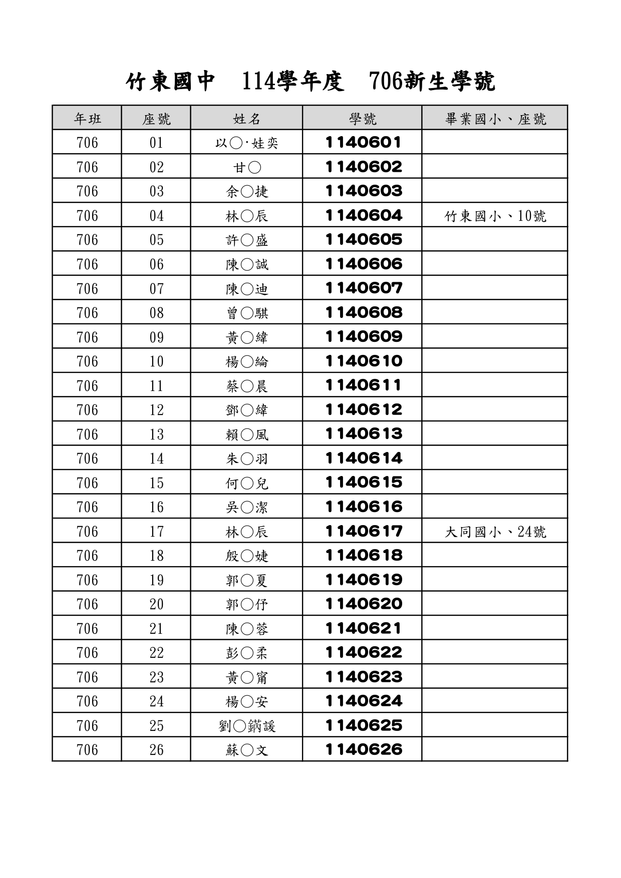 114 新生學號公告